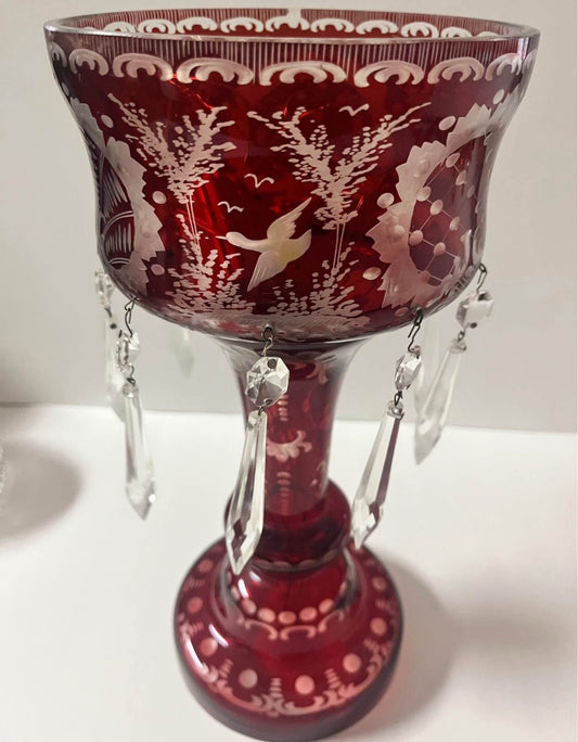 Vintage Bohemia Czech Ruby Red Mantle Luster with Crystal Prisms