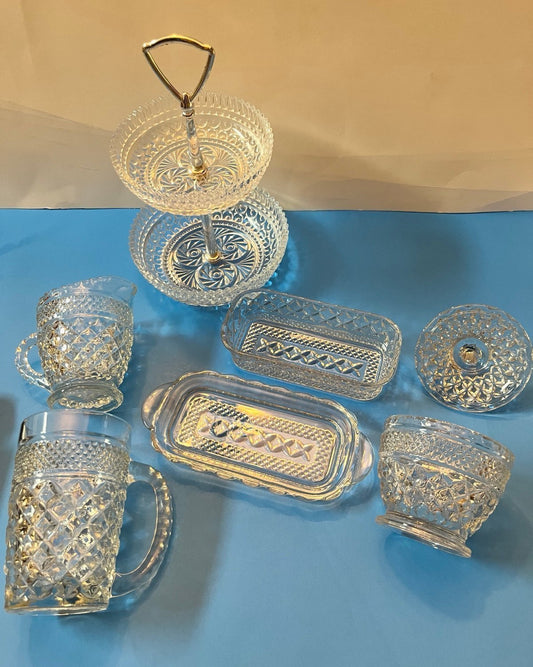 Vintage Anchor Hocking "Wexford" Pattern Pressed Glass Serving Set