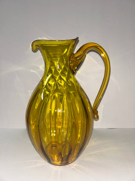 Vintage Blenko Light Amber Art Glass Pitcher with Fluted Ribs