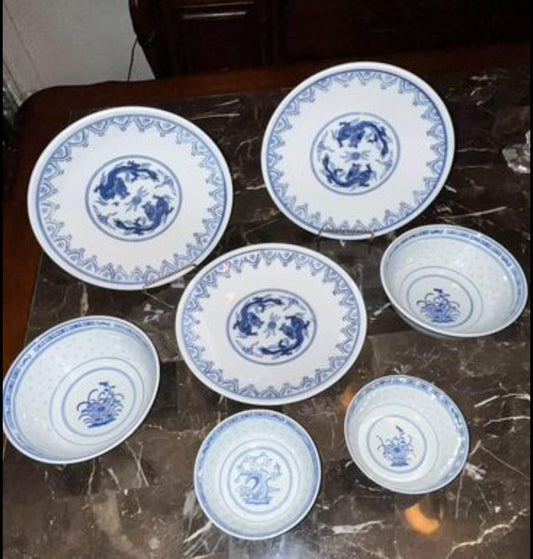 Vintage Blue & White Chinese Marked (7 Pieces Set)