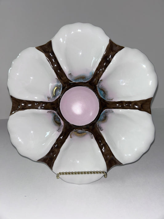Vintage 6-Well Oyster Plate with Iridescent Pink Center