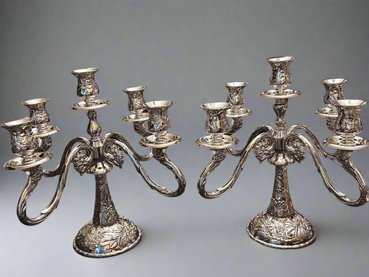 Vintage Silver Plated Victorian Style Floral Candelabra - Set of Two