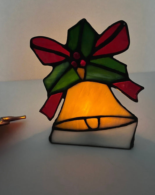 Vintage Stained Glass Christmas Bell & Cardinal Light Set