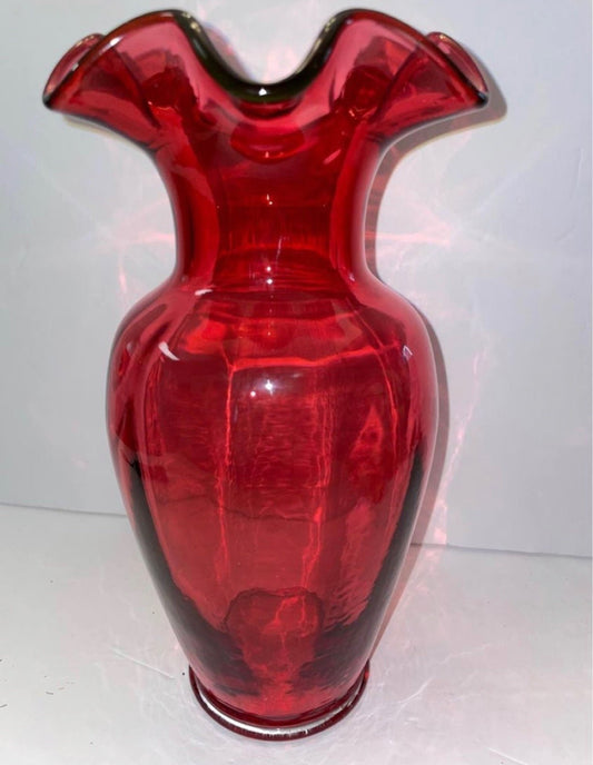 Vintage Signed Fenton 10.5”Flower Vase with Ruffled top.