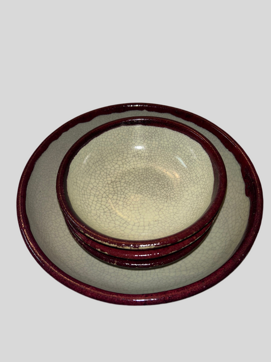 Pier 1 “Crackle Collection”Ceramic Bowls Set of 4 (1 Serving Bowl, 3 Cereal Bowls) Pier 1