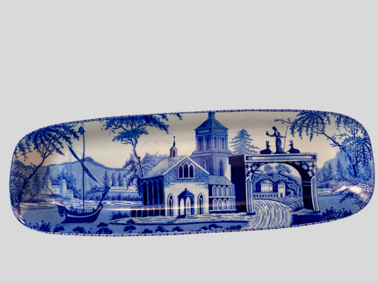 Pottery Barn Sophia Village Scene Rectangular Serving 19.5” Platter Crazed Glaze Finish