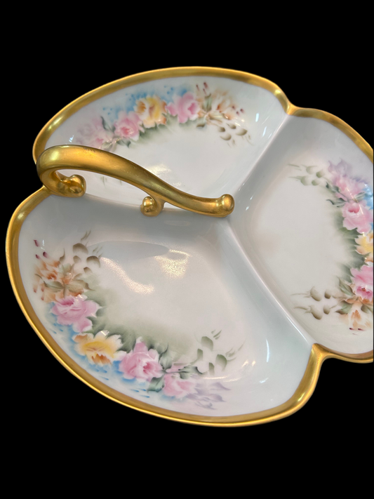 Antique Prussia Signed R.S. Germany Hand Painted Floral Three-Part Serving Dish