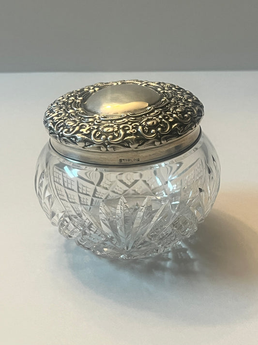 Antique Victorian Vanity Crystal Powder Jar with Sterling Silver Lid