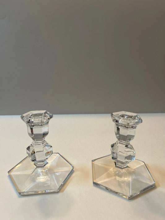 Marked Val St. Lambert From Tiffany Co. Crystal Hexagonal Candle Holders