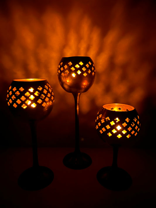 Vintage Mid Century Modern Brass Nesting Candle Holder Set