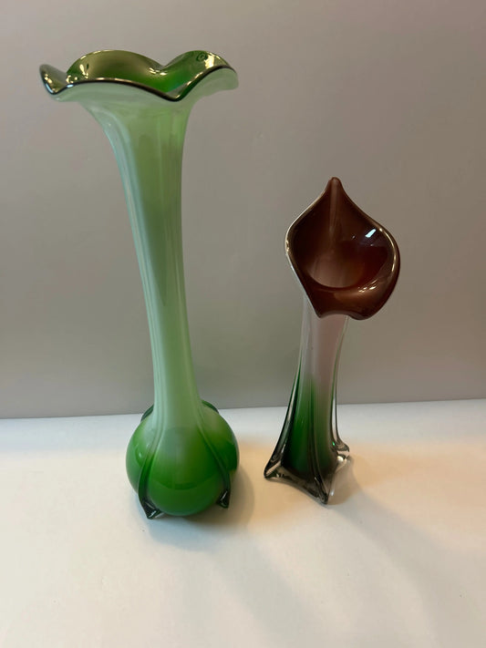 Vintage Calla Lily-Tulip Inspired Art Glass Hand Blown Vases