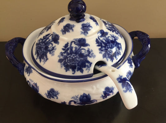 Vintage Cracker Barrel Chinoiserie Soup Tureen with Lid & Ladle