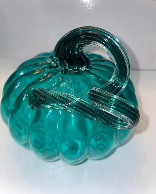 Hand-Blown Murano Art Style Teal Pumpkin