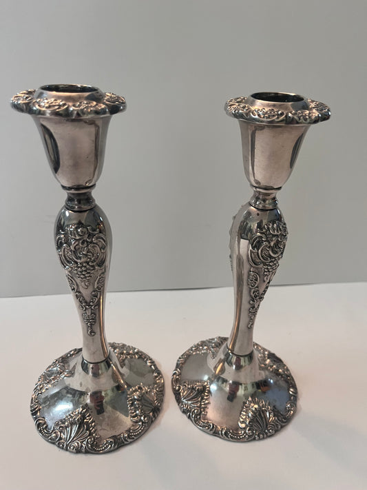 Vintage Godinger Silver-Plated Candlesticks with Floral Design
