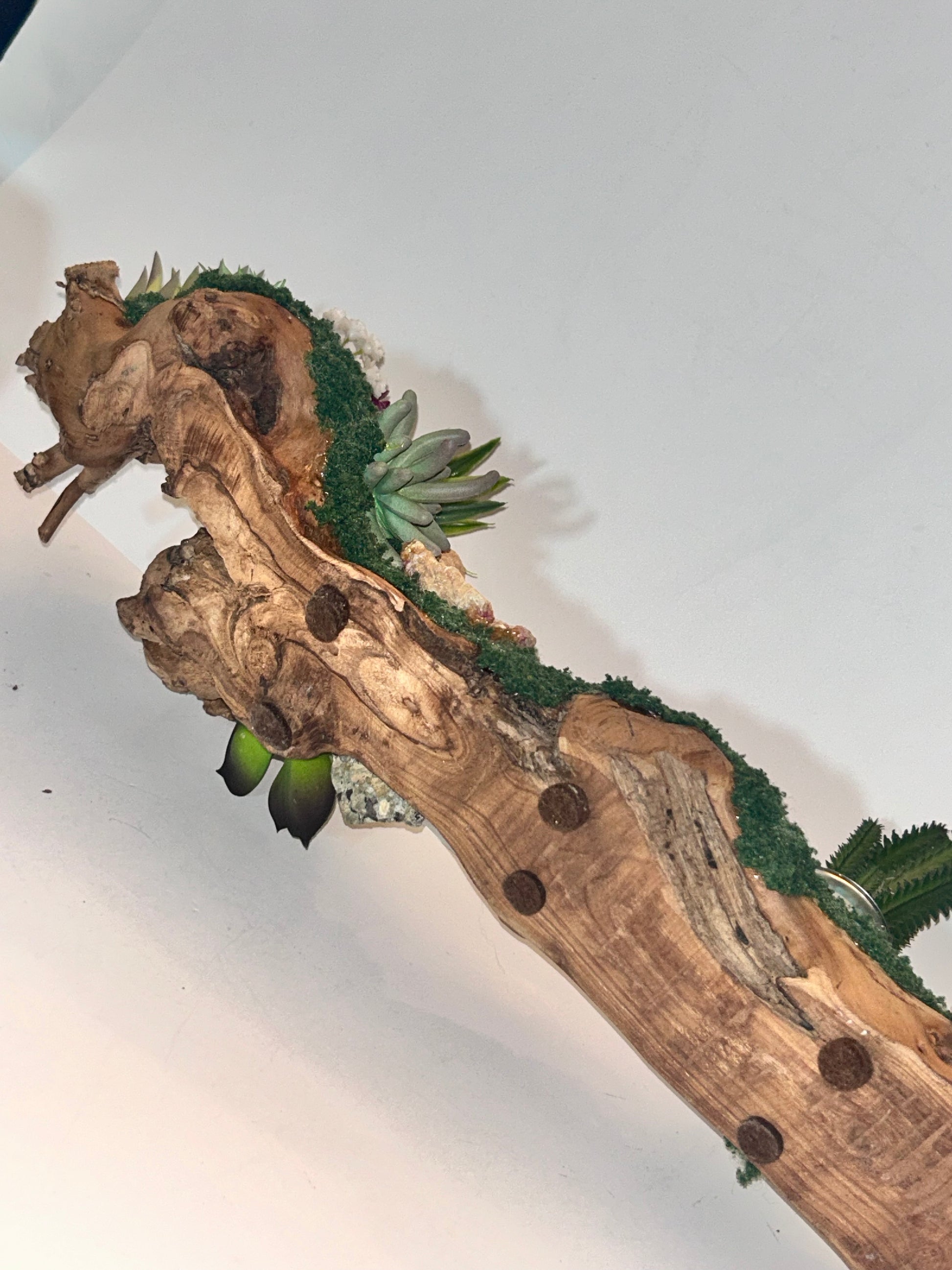 - Base: A substantial, artfully shaped piece of natural driftwood.