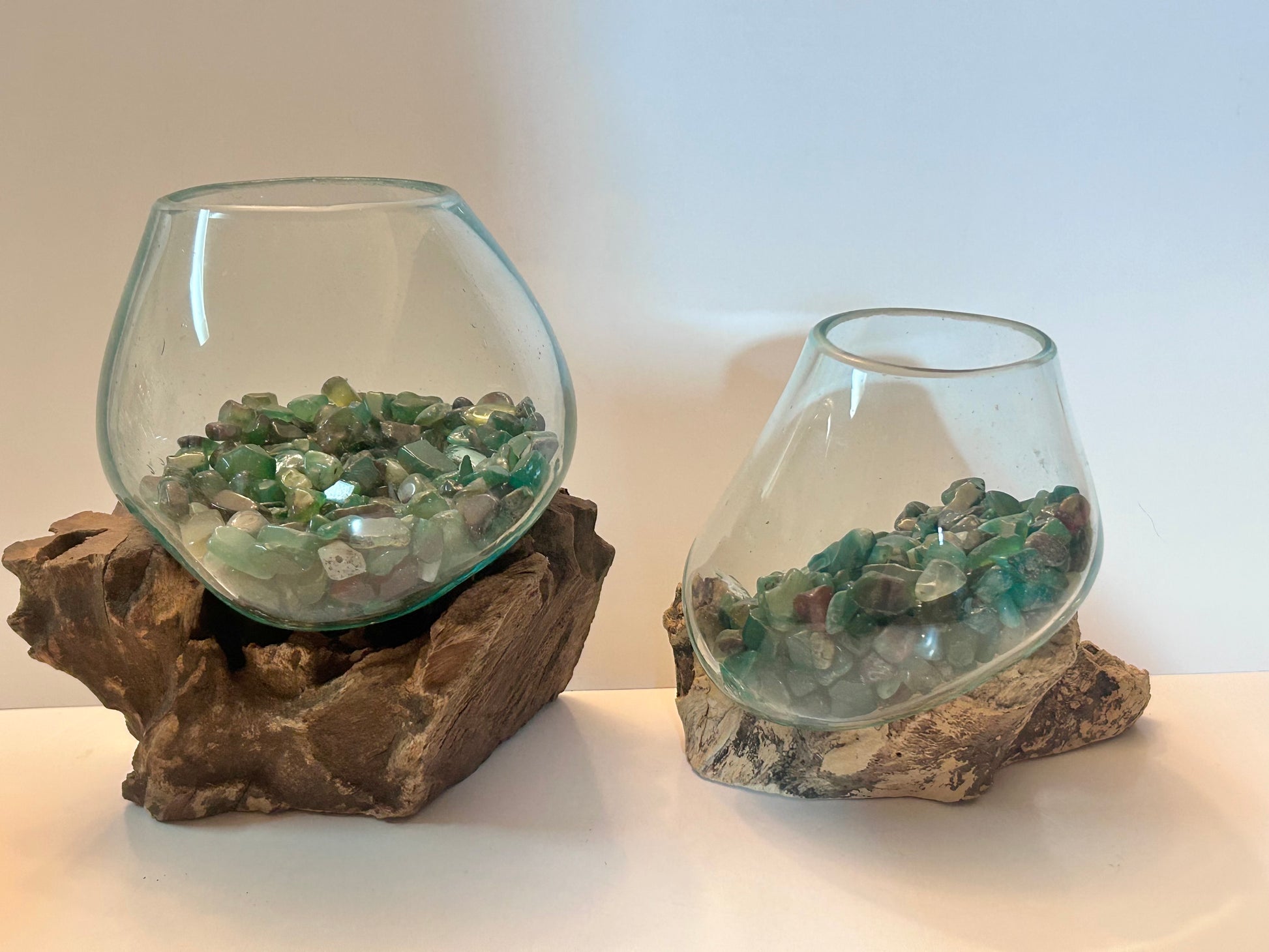 - Fill: Filled with beautiful tumbled green crystals/stones (included).
