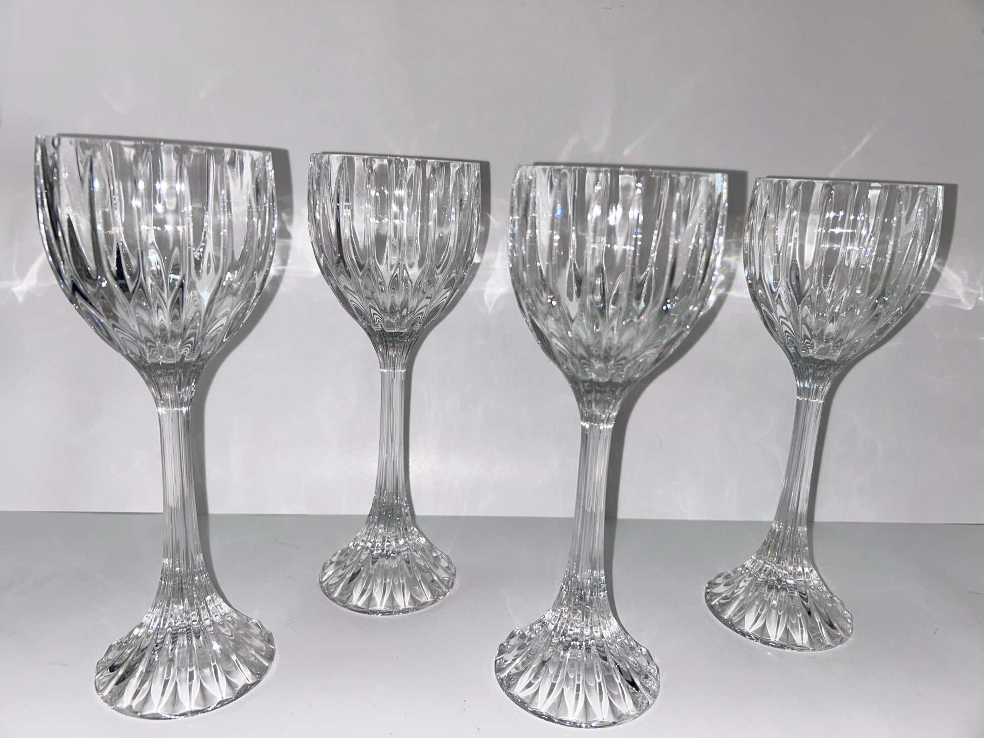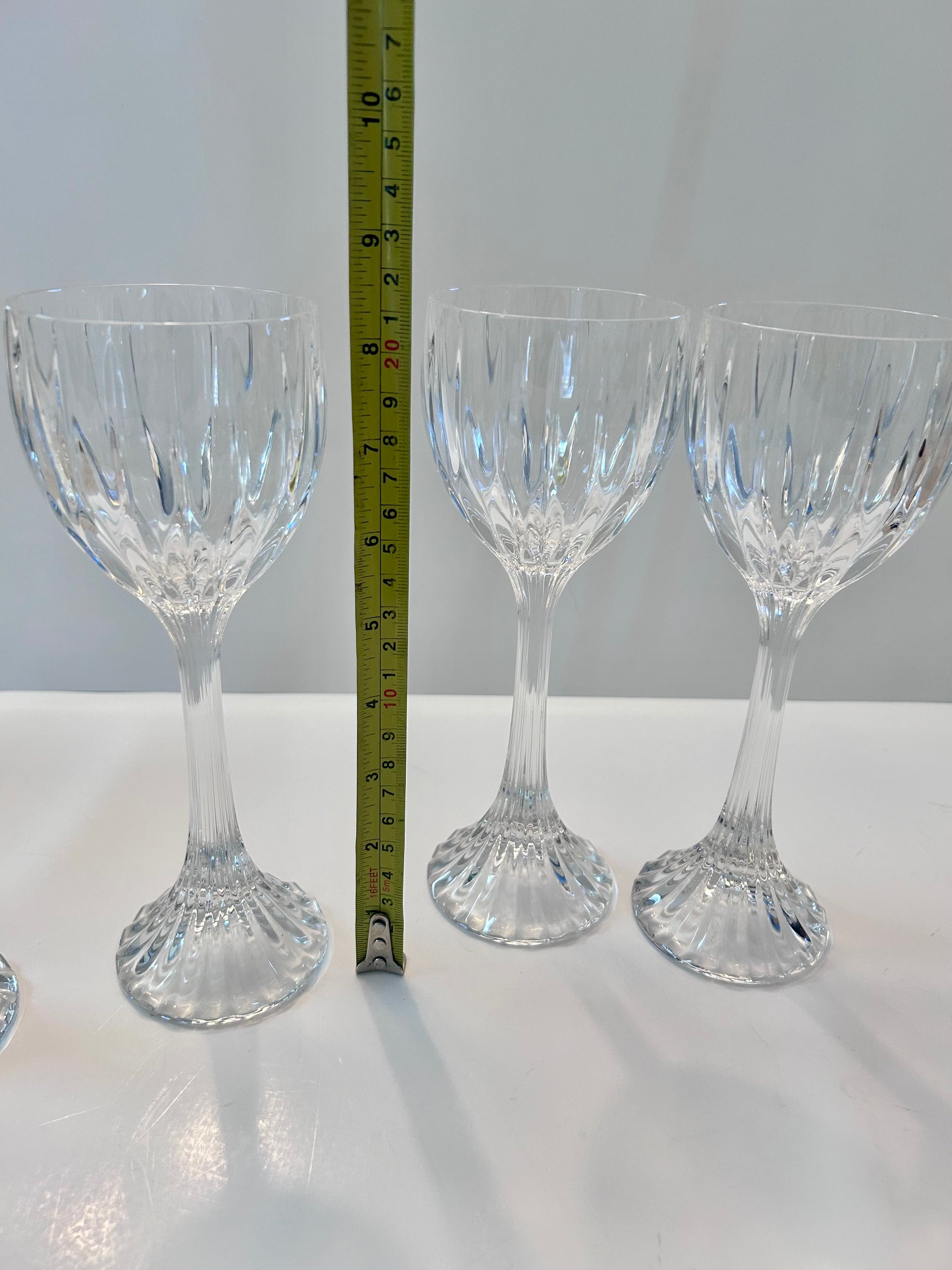 Set of 4 | Mikasa Park Lane Crystal Hock Wine Glasses | 8 1/4" Tall | Vertical Cut Design