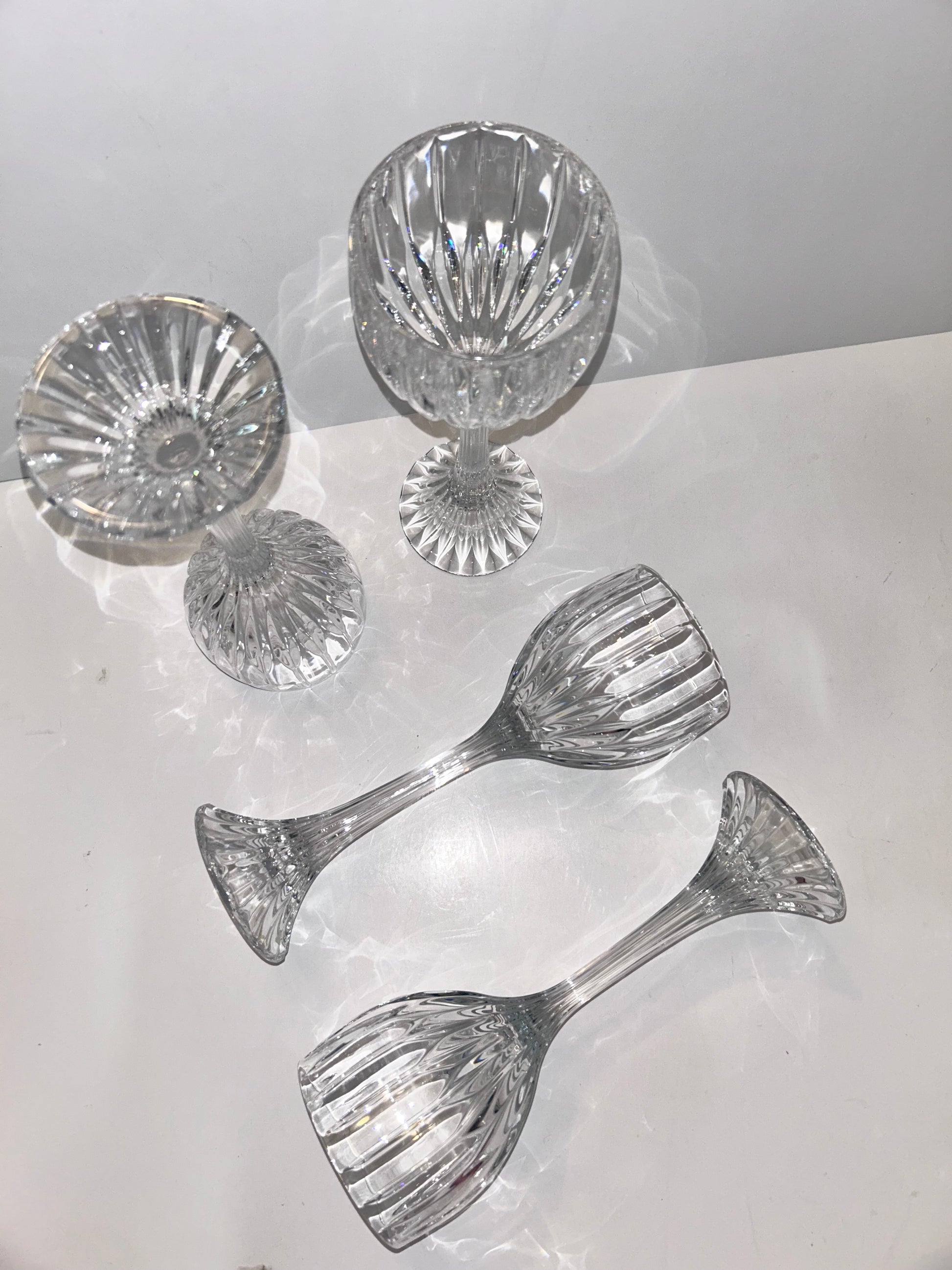 • Design: Heavy lead crystal with vertical cut bowl and ribbed stem.